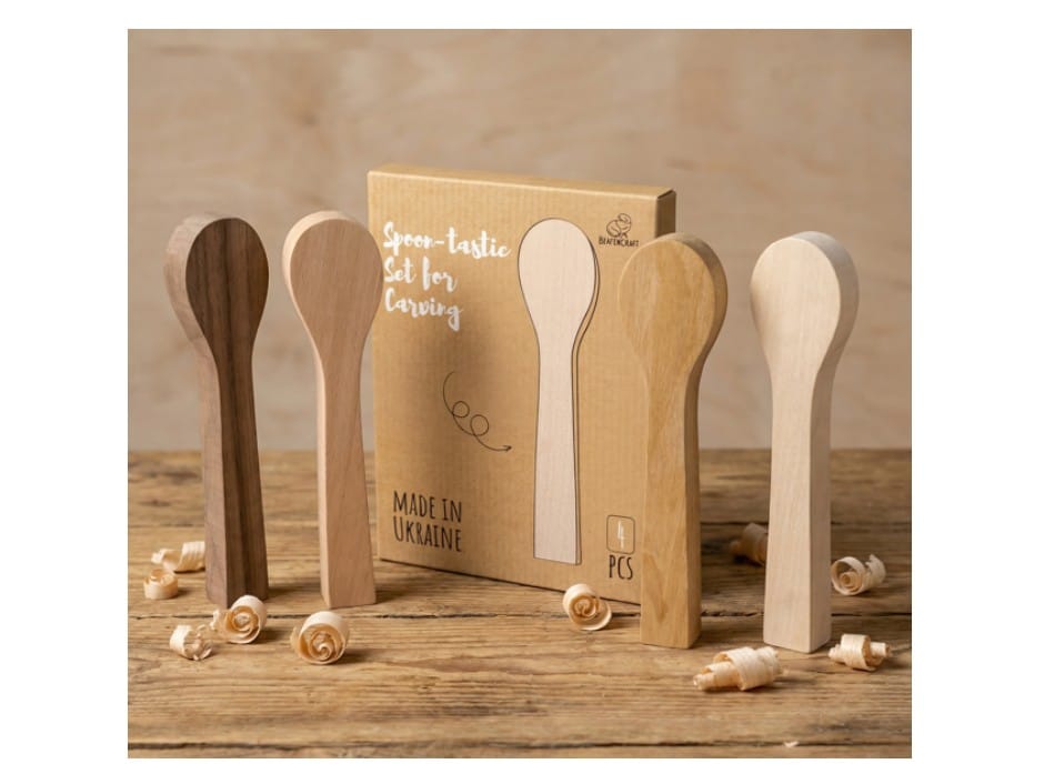 BeaverCraft BB2 Spoon Carving Blanks Set – 4 Houtsoorten